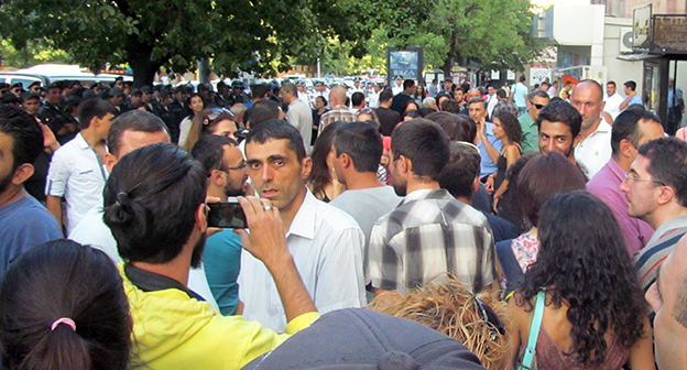 1 сентября сторонники инициативной группы "Нет грабежу!", борющиеся против подорожания электроэнергии, собрались в Парке Влюбленных. Фоторепортаж корреспондента "Кавказского узла" Армине Мартиросян