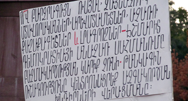 11 сентября Активисты инициативной группы “Нет грабежу!” провели на площади Свободы в Ереване митинг и заявили, что считают свои требования об отмене новых тарифов на электроэнергию невыполненными. После митинга участники протеста прошли шествием по центральным улицам города и, прорвав полицейский кордон, вышли на проспект Баграмяна – туда, где в июне стояли их баррикады