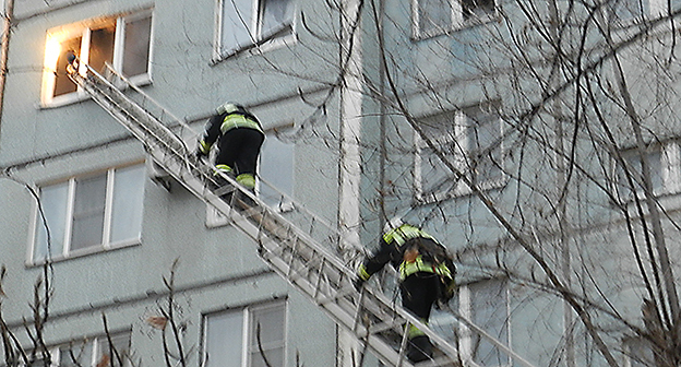 Тыльная сторона дома, горят несколько квартиры