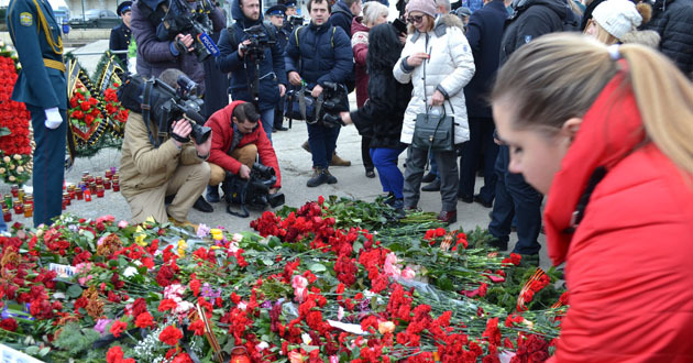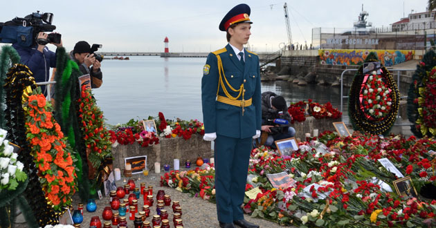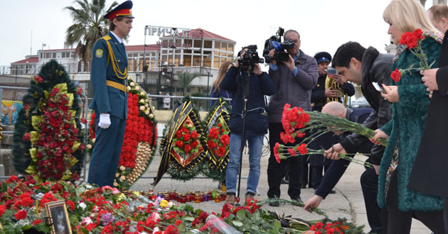 На площади Южного мола прошел траурный митинг в память о погибших в авиакатастрофе в Сочи.