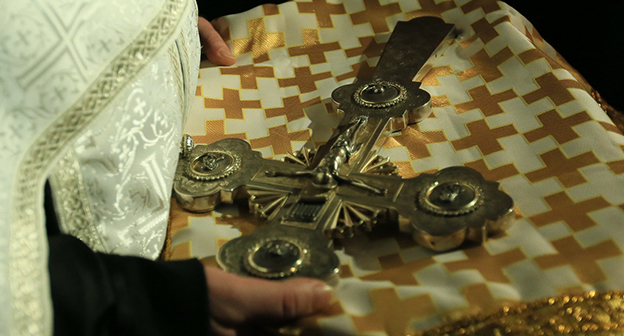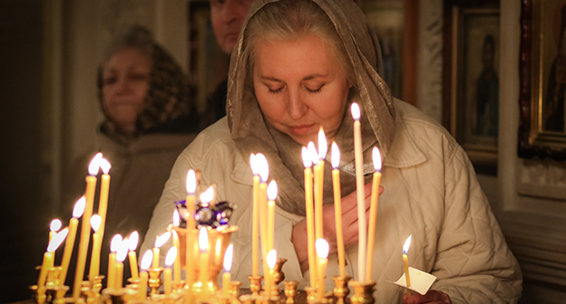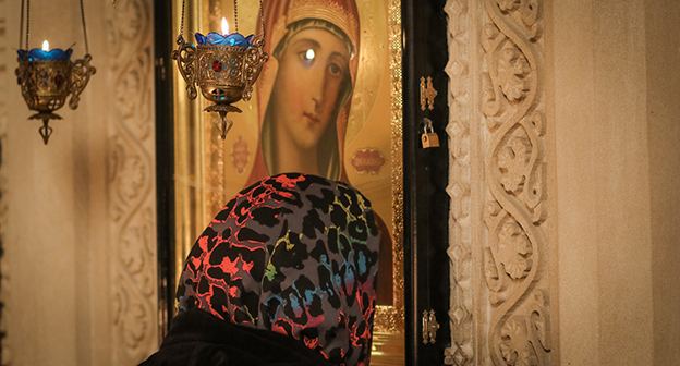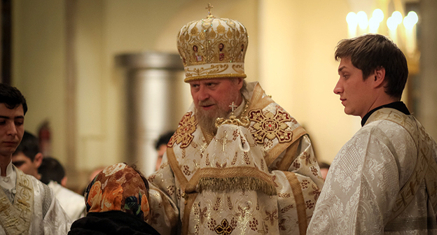 Праздничное богослужение в главном бакинском храме Русской православной церкви, кафедральном соборе Святых жен-мироносиц