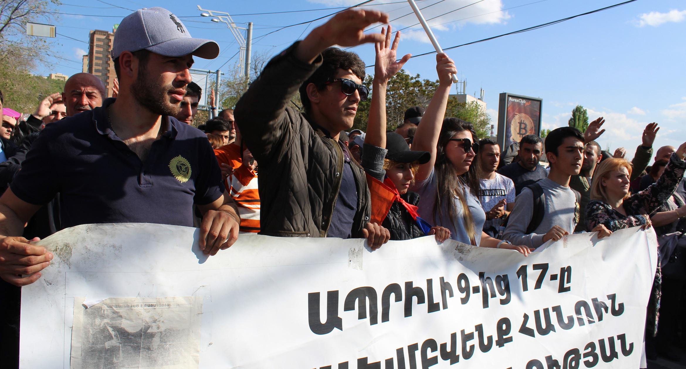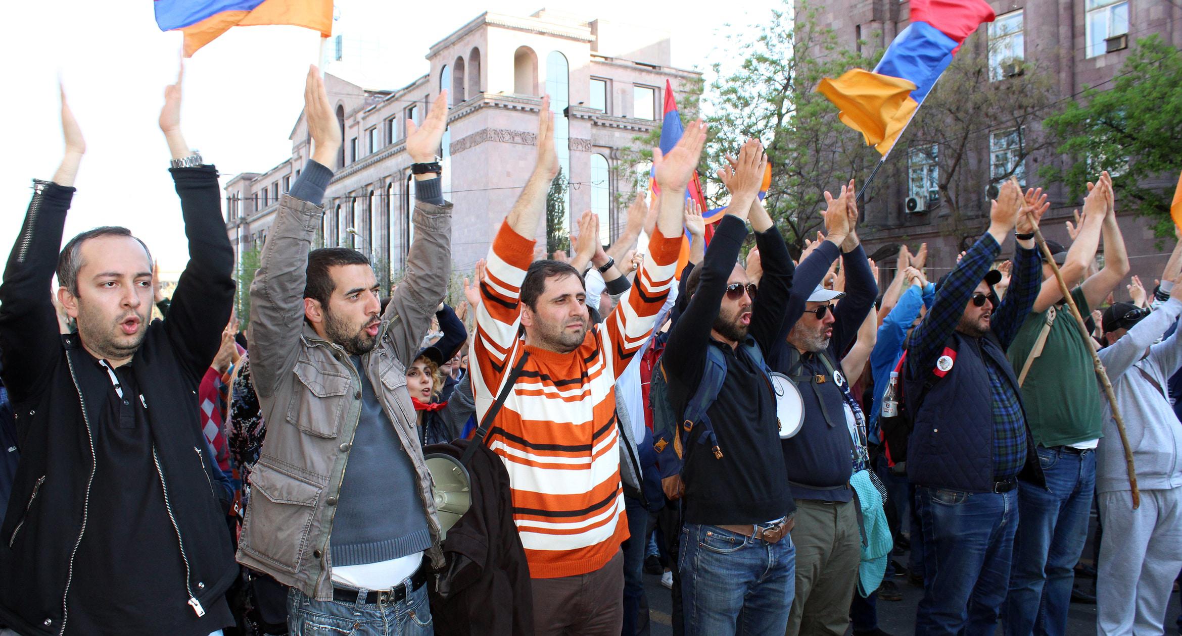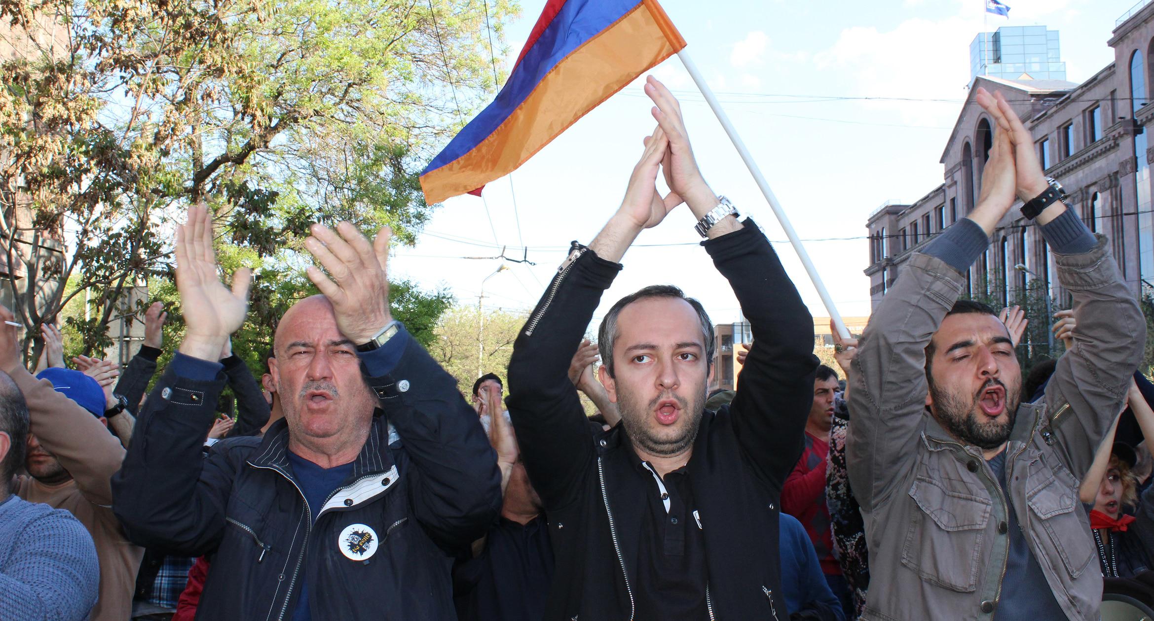 Оппозиция выступает против третьего срока Сержа Саргсяна. После митинга 13 апреля сторонники оппозиции заблокировали площадь Франции в центре Еревана, парализовав движение по трем уличным «артериям» – проспектам Баграмяна и Маштоца, а также улице Саят-Нова.