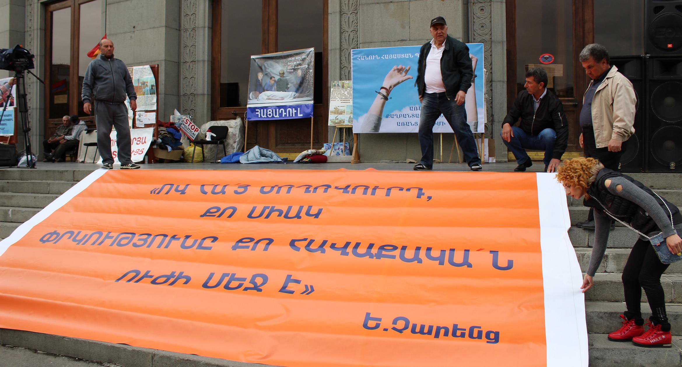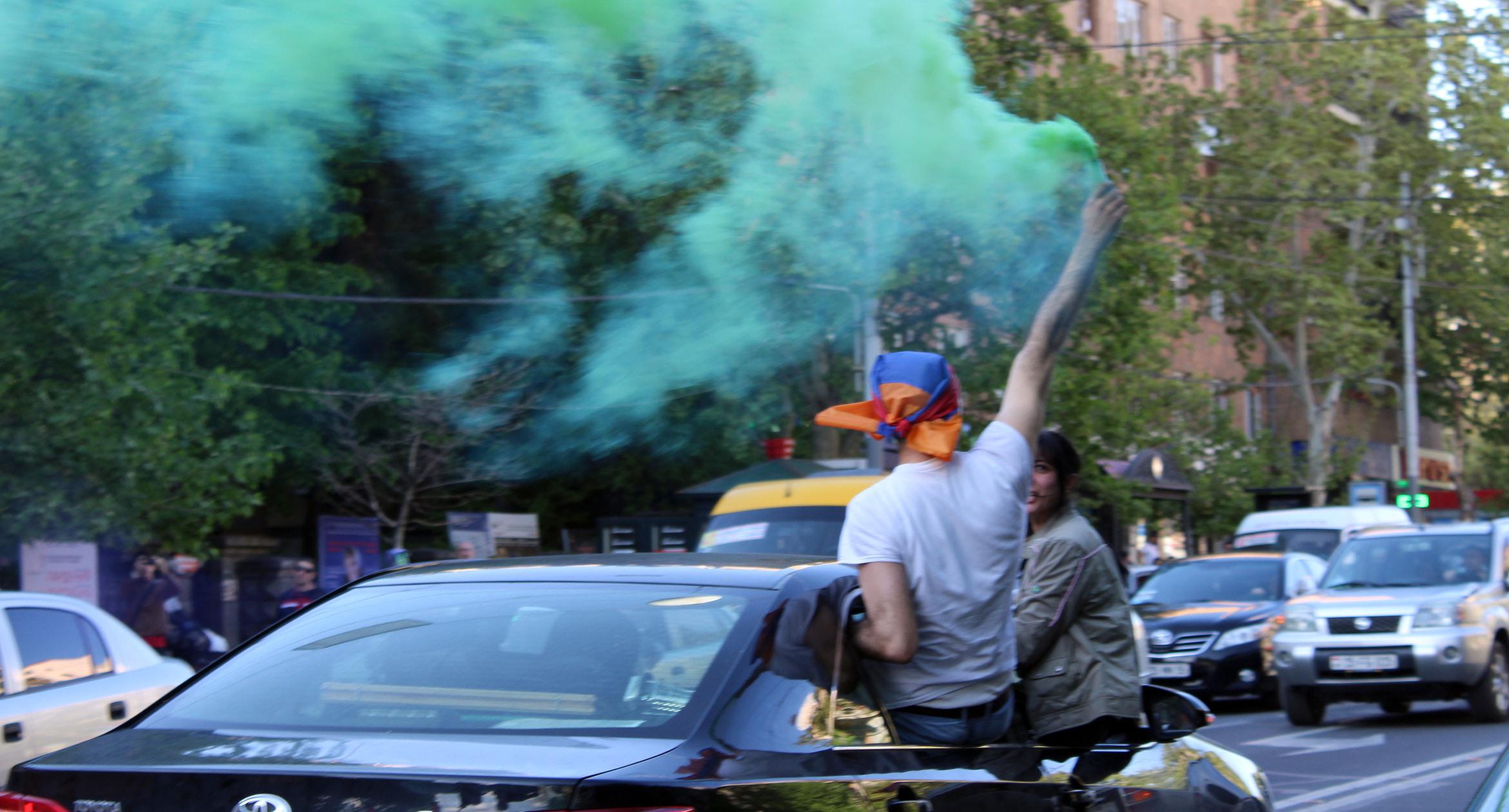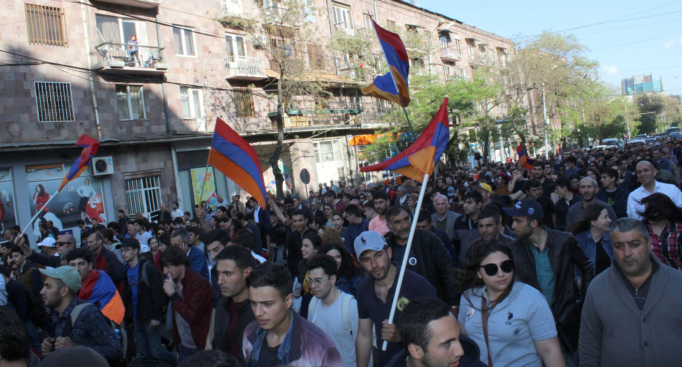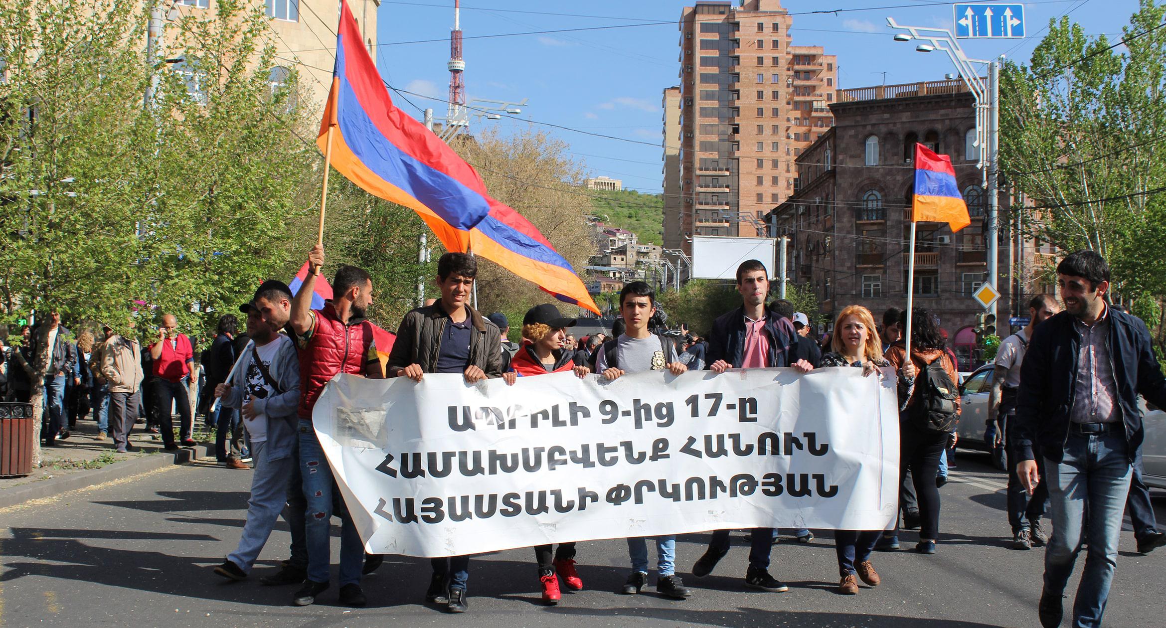 Оппозиция выступает против третьего срока Сержа Саргсяна. После митинга 13 апреля сторонники оппозиции заблокировали площадь Франции в центре Еревана, парализовав движение по трем уличным «артериям» – проспектам Баграмяна и Маштоца, а также улице Саят-Нова.