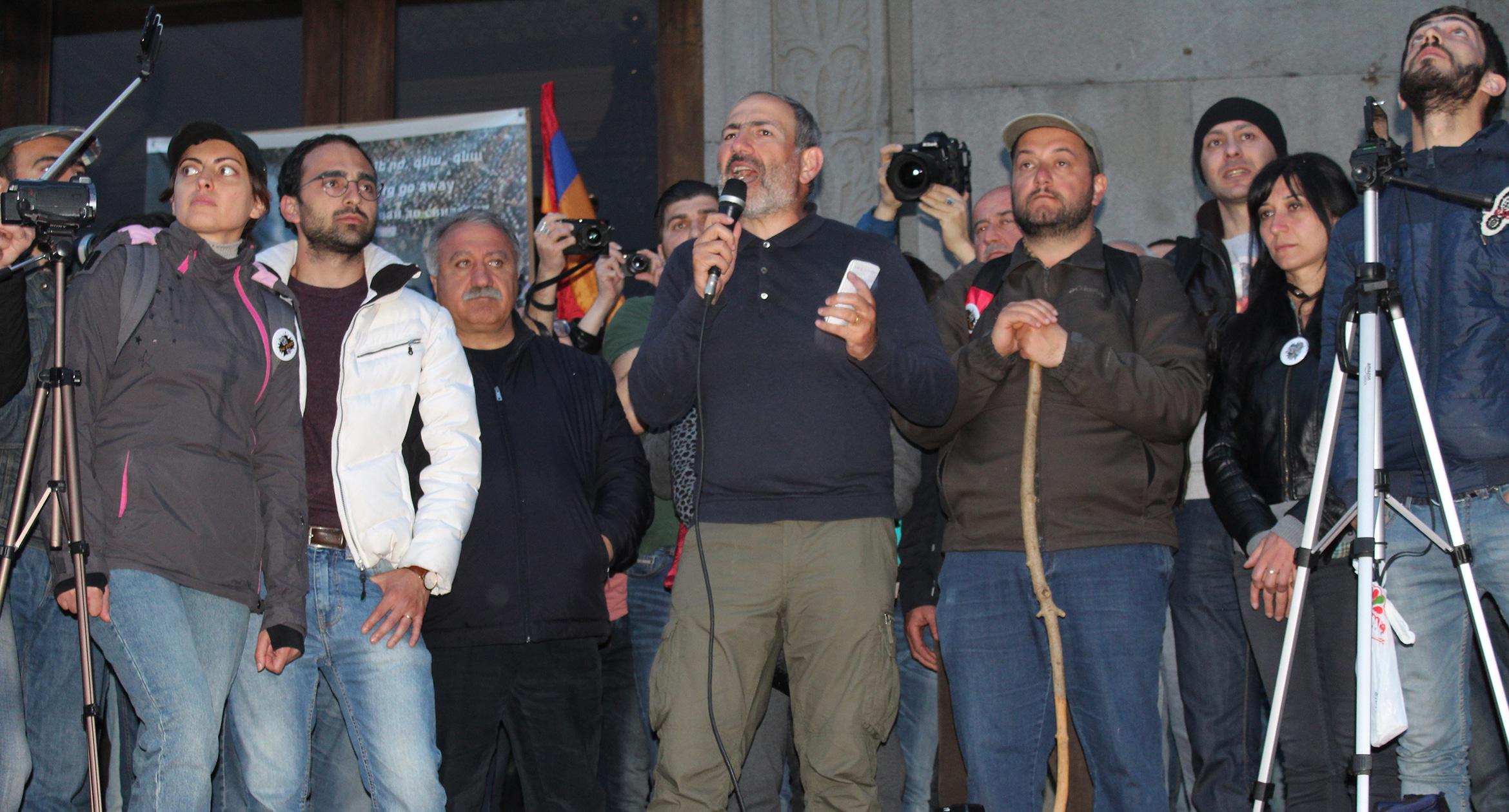 Главному митингу предшествовали двухнедельный пеший тур «Мой шаг!» лидера партии «Гражданский договор», главы парламентской фракции «Елк» Никола Пашиняна, акции неповиновения и автошествие инициативного движения «Отвергни Сержа!», голодовка лидера партии «Национальное согласие» Арама Арутюняна, круглосуточный сидячий пикет ветерана Карабахской войны Володи Аветисяна, митинги Фронта «Во имя государства Армения».