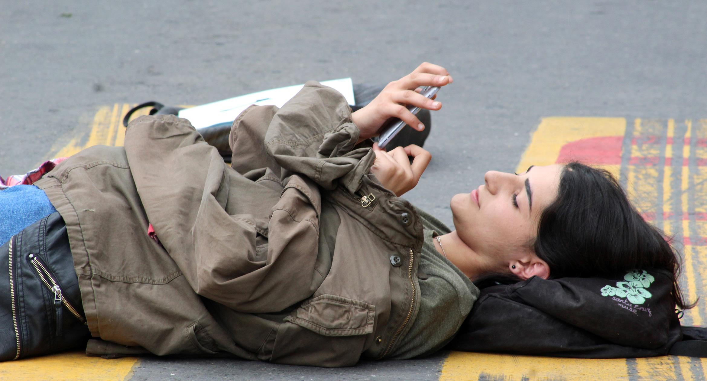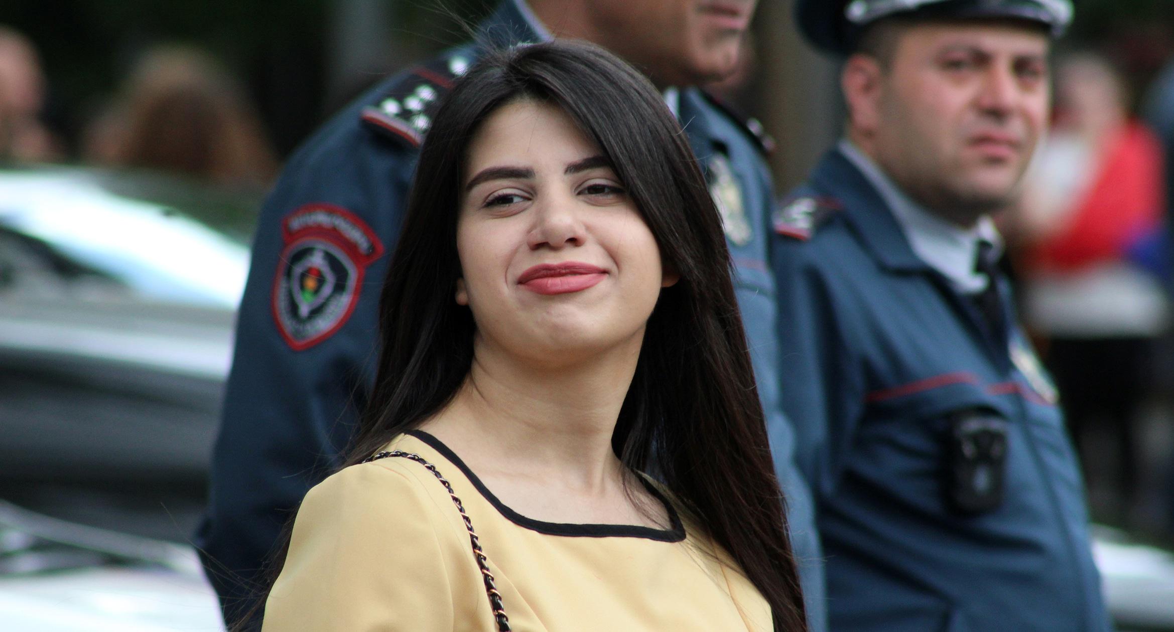 Студентка на фоне протестного выступления в Ереване