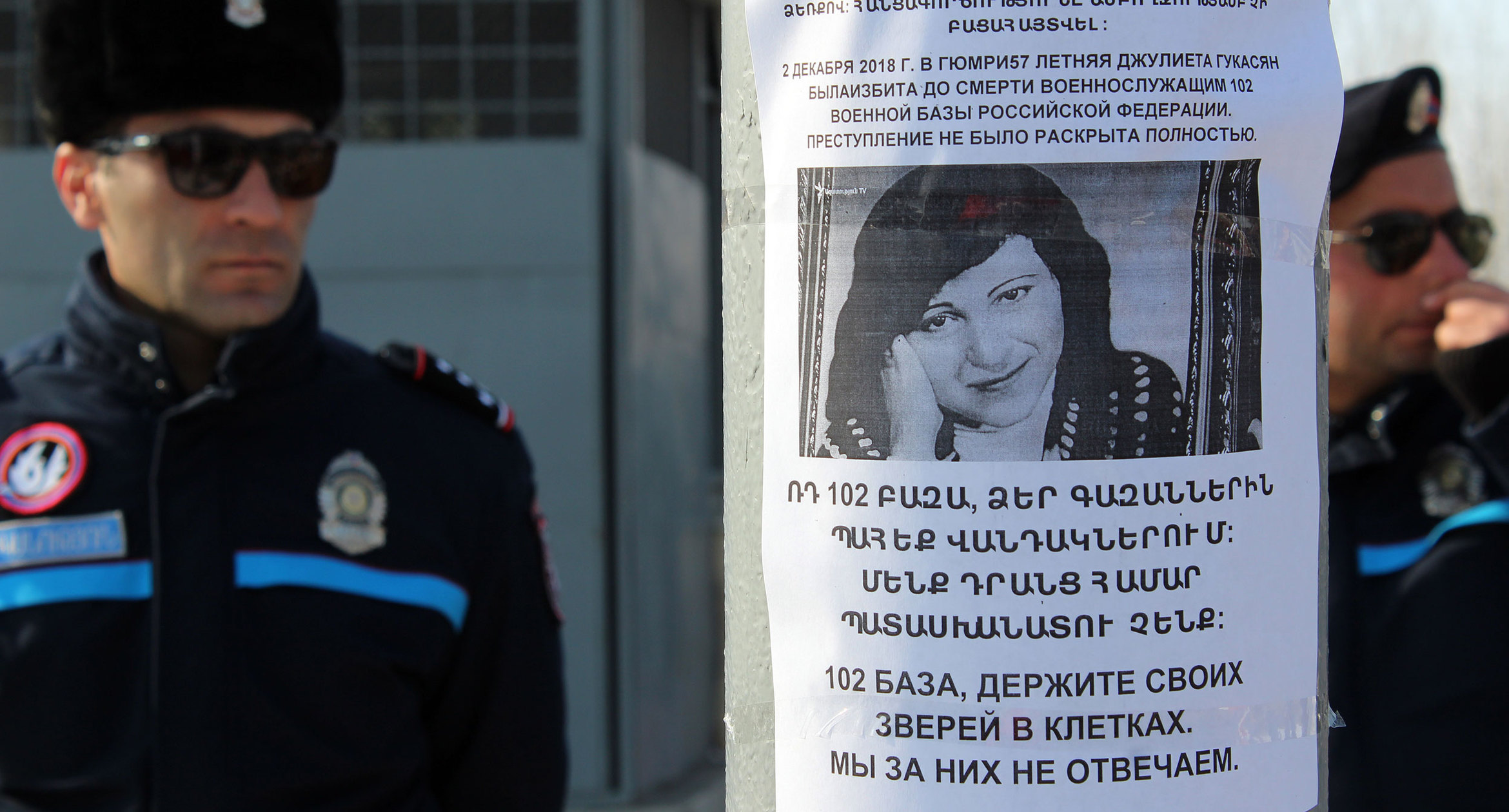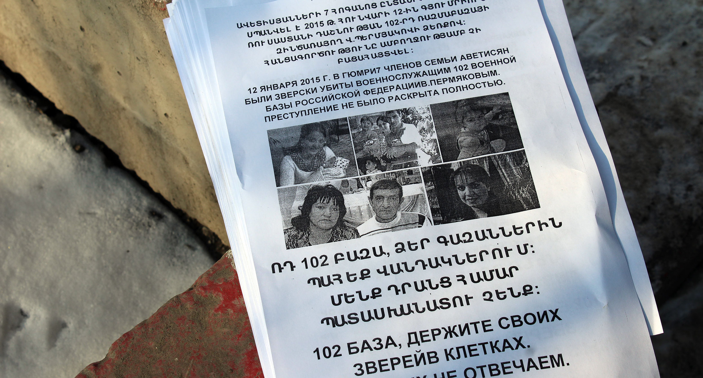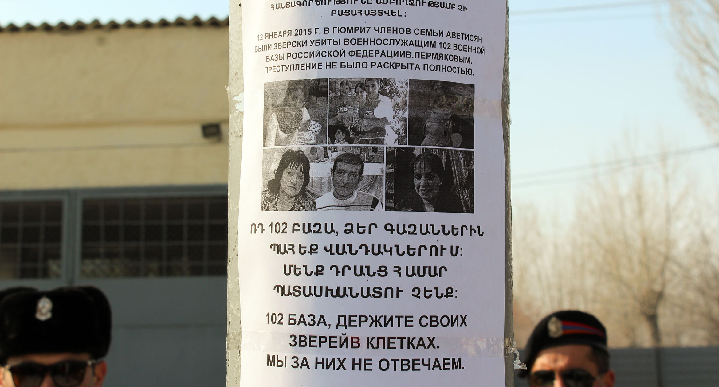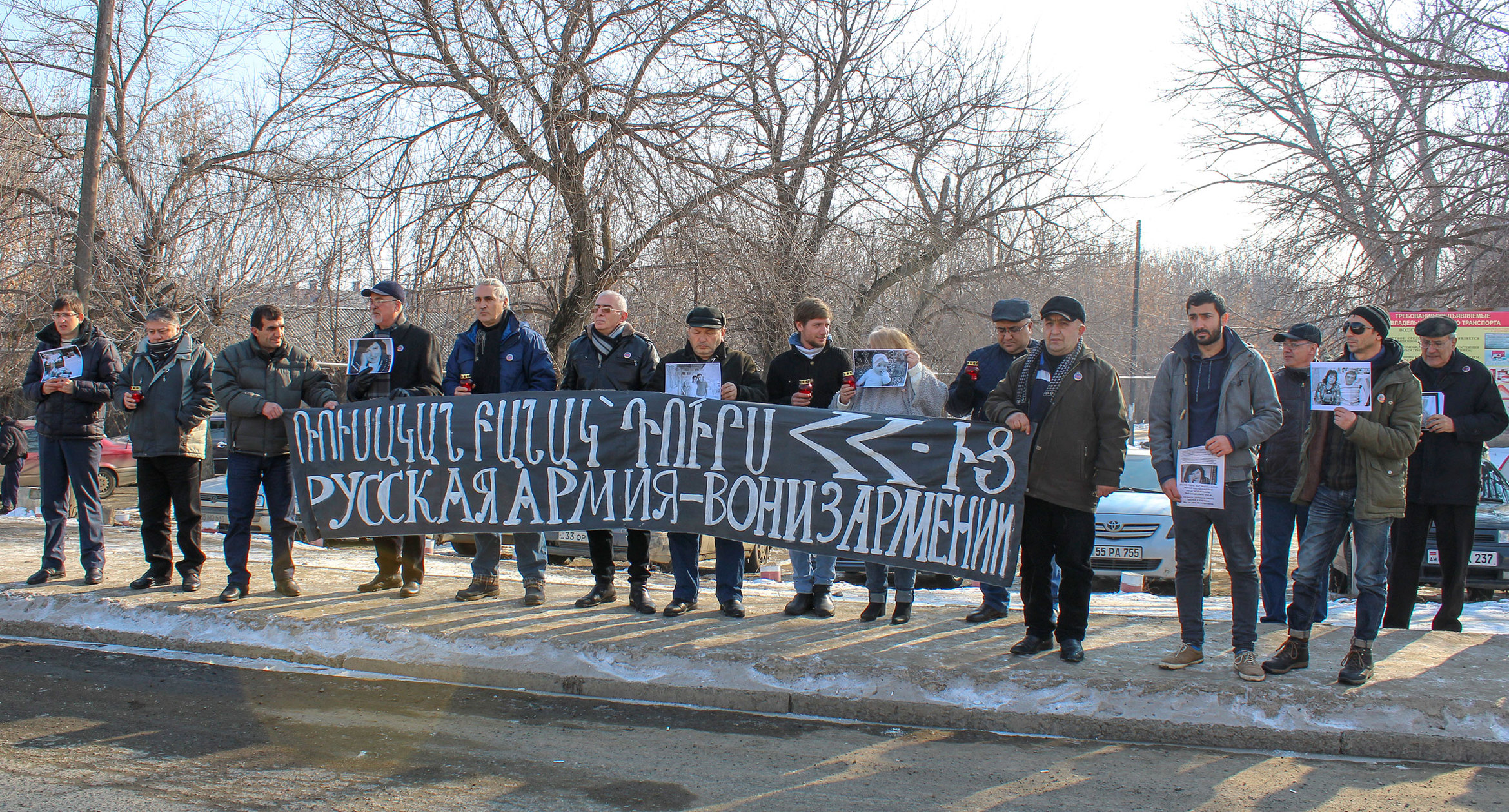 Жители Армении 12 января собрались перед российской военной базой в Гюмри в четвертую годовщину убийства семьи Аветисян. Они потребовали вывода российских войск из страны. Представители военной базы в Гюмри не вышли к протестующим. Всего на акции собрались около 30 человек. Организаторы мероприятия отметили, что акция была “молчаливая”: в знак уважения к памяти погибшим. О том, что происходила у ворот российской военной базы в Гюмри, фоторепортаж корреспондента “Кавказского узла” Армине Мартиросян.