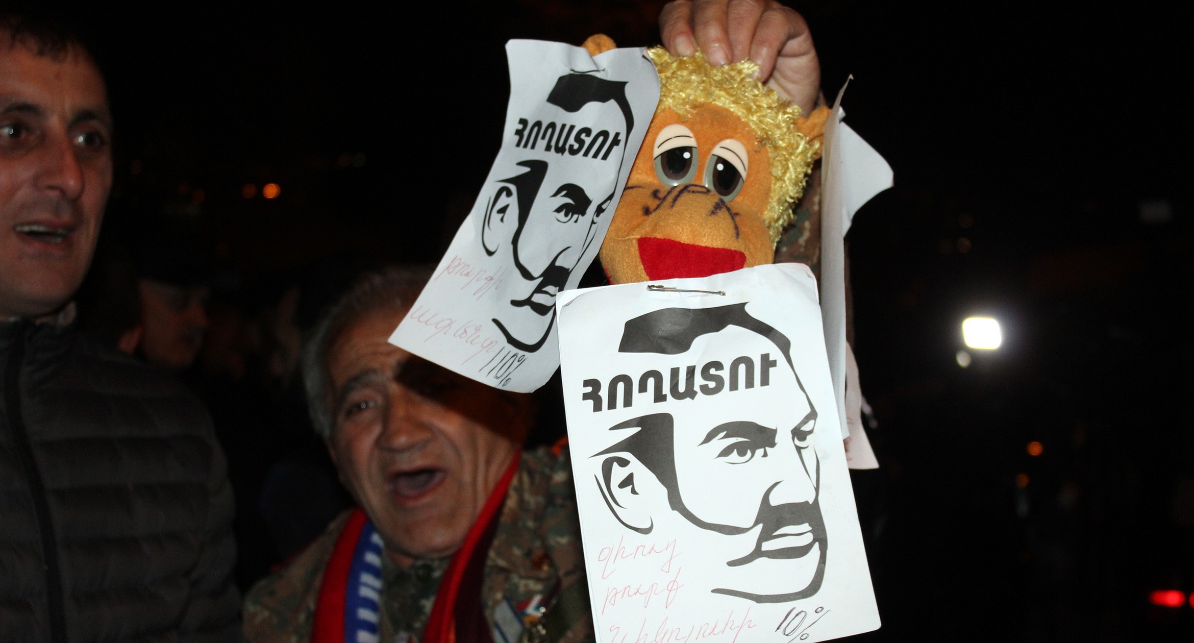Надпись на листовках с изображением Пашиняна: "Отдавший земли!"