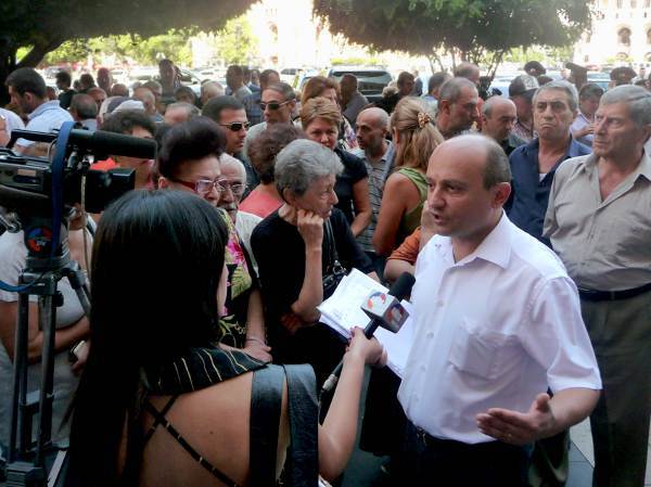 Степан Сафарян, депутат от оппозиционной партии ‘’Наследие’’, выступает в защиту протестующих