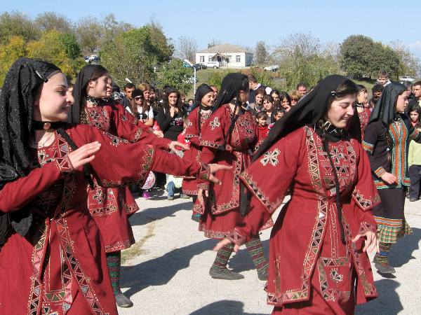 Село Мирзаани, Кахетия. Праздник «Пиросманоба». Девочки танцуют «мтиулури» - горский танец. 22 октября 2011 г. Фото корреспондента «Кавказского узла» Клары Бараташвили