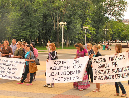 пикет в защиту бездомных животных и станции юннатов в Майкопе. 5 июня 2012 г. Фоторепортаж корреспондента "Кавказского узла" Олега Чалого