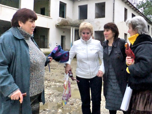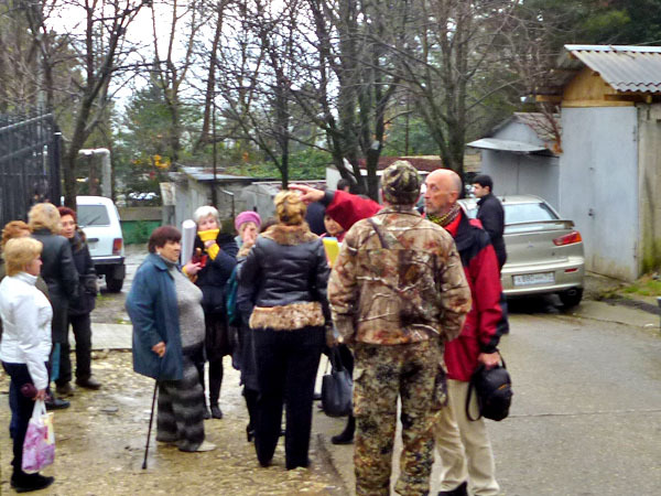 Делегаты и жители микрорайона "Малый Ахун" не были пропущены сотрудниками ЧОП на охраняемую территорию бывшего детского сада для участия и проведения конференции ТОС. Сочи, 16 февраля 2013 г. Фото Светланы Кравченко для «Кавказского узла»